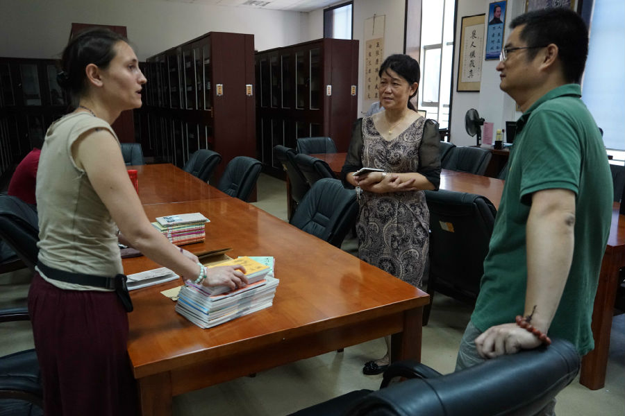 据Daniela Campo教授介绍,她在巴黎大学专攻中国语言文学,此行的目的是为撰写一本有关抚州地方文化专著寻找所需的素材。孔彬馆长、梅乐兴主任热情接待了她,帮助她查找到《临川近现代文化史》、《抚州文史》、《抚州年鉴》、《临川县志》等多种地方文献书籍,并为其提供免费复印服务。临行前她表示,经过数天的查阅,已经找到相关资料,非常感谢馆领导对她的关心和帮助,此行让她充分感受到了中国人的热情好客,希望自己有机会再来抚州参观游玩。