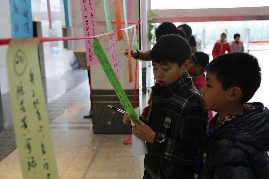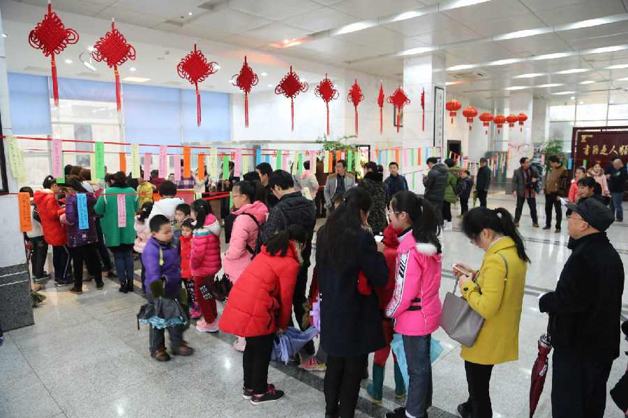正月十五是中国传统的元宵佳节,民间有猜灯谜习俗,2月22日元宵节上午,市图书馆在一楼大厅举办了“闹元宵·猜灯谜”活动,谜语分灯谜及知识问答两部分,灯谜主要有成语、地名、人物、历史名词、动植物等类型,知识问答围绕市图书馆2015年所做工作等出题。