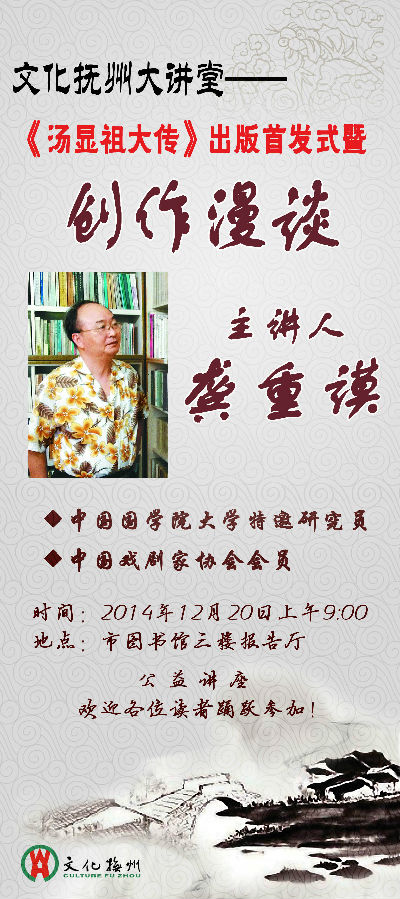 【文化抚州大讲堂】《汤显祖大传》出版首发式暨创作漫谈