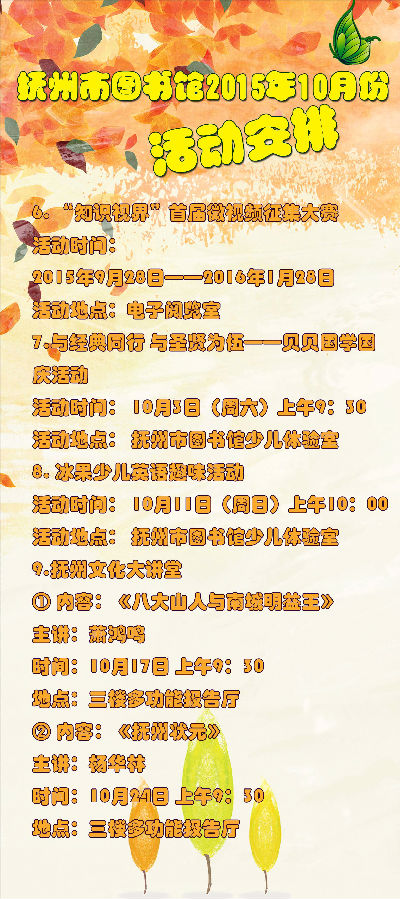活动安排 | 抚州市图书馆2015年十月活动
