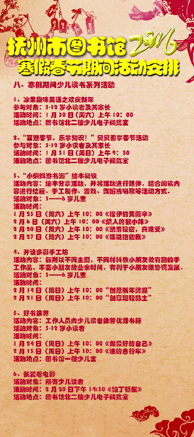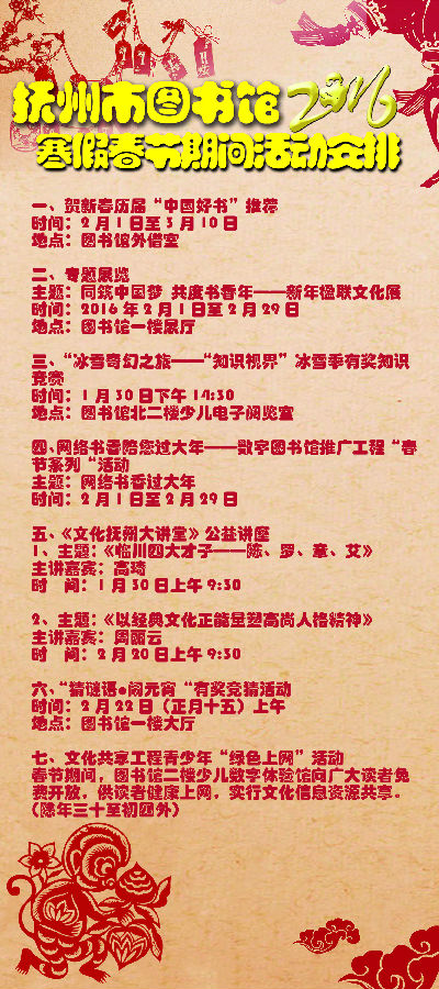 活动安排 | 抚州市图书馆2016年寒假春节期间活动