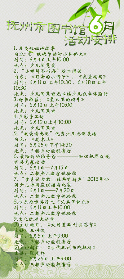 活动安排 | 抚州市图书馆2016年六月活动
