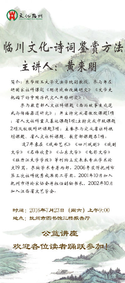 【文化抚州大讲堂】《临川文化——诗词鉴赏方法》