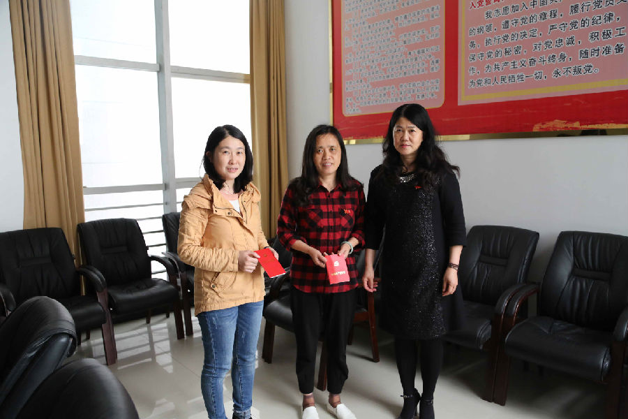 2、为陈蕾、罗芳同志过政治生日,重温了入党誓词、回顾了入党历程、支部书记孔彬同志对她们谈话寄语、并且赠送了党章,全体党员帮助她们过政治生日。