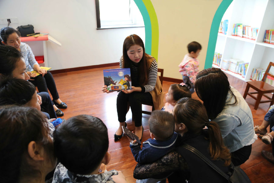 2017年4月22日,月亮姐姐在少儿电子阅览室小蝌蚪亲子园区给小朋友们带来《夜晚的声音》,故事发生在夜幕降临,雨林动物们准备睡觉休息的时候,一个卷缩在香蕉箱子里的小家伙哭闹不停,这小家伙究竟是谁?他究竟为什么哭呢?故事就在这样的悬念中继续推进,当谜底终于揭晓时,原来小家伙是因为想念妈妈才哭的,他最需要的是妈妈的爱,这是一个关于爱的故事,不禁展现了母爱是一切幼小生命的源泉,同时还展现了更广博的爱,森林中的动物们一次次被吵醒,可是它们一个个走过去耐心的安慰哭泣的小家伙,表现了可贵的耐心,同情心和对孩子的理解,这些都是稚嫩的孩子成长所需要的爱的环境。出人意料的结局,更是把爱的主题推向了高潮。