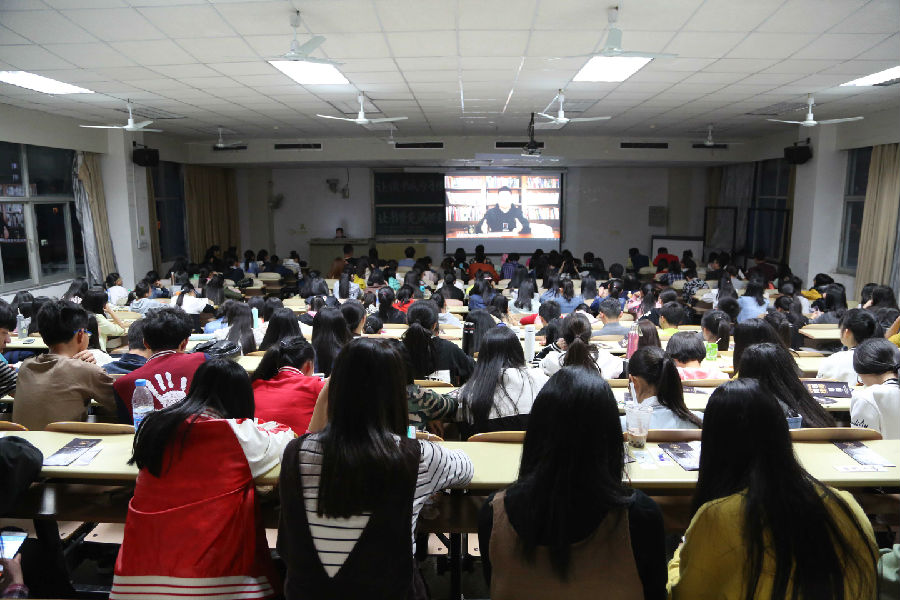 当晚,偌大的阶梯教室座无虚席,闻讯而来的学子早早入了座。《未来简史》是由新锐历史学家、牛津大学历史学博士、耶路撒冷希伯来大学历史系教授尤瓦尔•赫拉利撰写的一部“神”书,该书彻底颠覆了人们的思考方式,一出版就在全球掀起一股风潮,引起广泛关注。讲座中,樊登读书会发起人樊登用非常精炼和富有逻辑性的语言,为大家带来了精彩的解读,与听众共同探讨人类的命运和未来的出路,既惊世骇俗又发人深思。讲座结束后,在主持人的引导下,同学们畅所欲言,对书本展开了热烈的讨论,视频讲座与交流会取得了圆满成功。