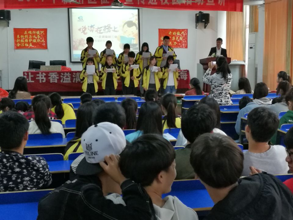 2017年4月26日下午,为进一步推进全民阅读,大兴读书之风,抚州市图书馆朗诵小组工作人员走进临川三中,与学校学生代表朗诵了诗歌《为了明天》、《春天》、《拥抱大海》,散文《笔事》以及国学经典《论语》等。朗诵结束后,我馆工作人员向临川三中的同学们捐送了《经典作文》,并散发了“全民阅读活动倡议书”,希望同学们能养成“多读书、读好书、好读书”的校园风气,学会从经典诗文诵读中提升自己的文化水平和道德修养。
