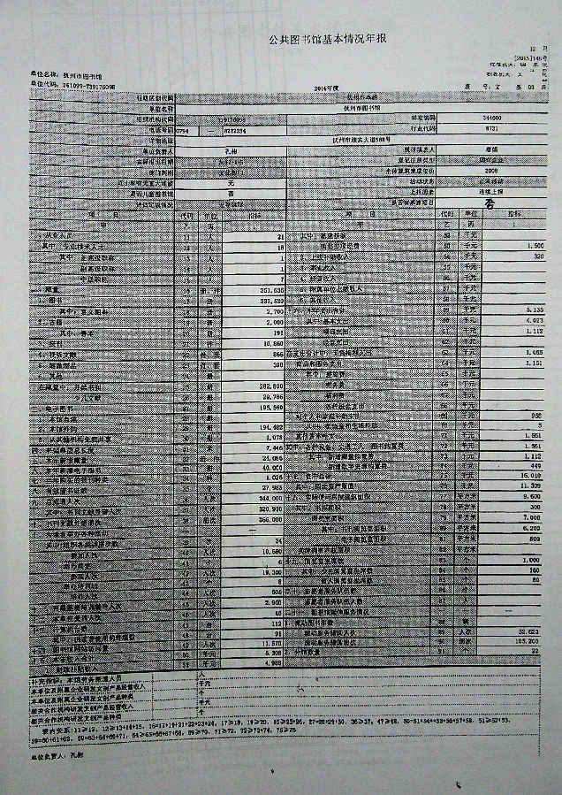 2015年度抚州市图书馆基本情况年报