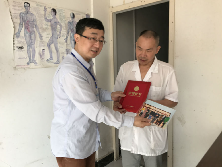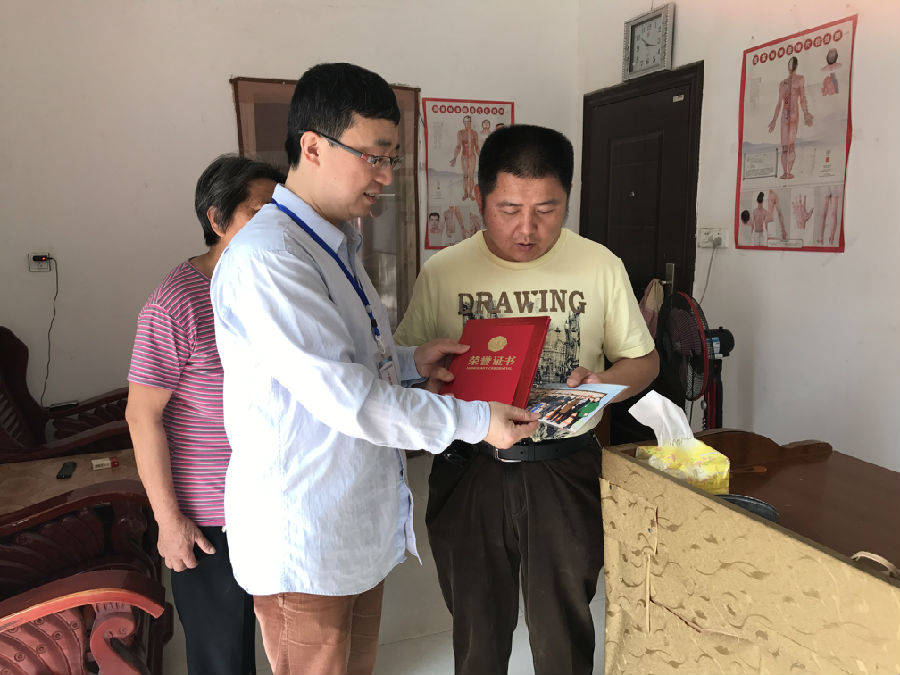 我馆工作人员上门为全国优秀盲人(抚州)读者送上荣誉证书