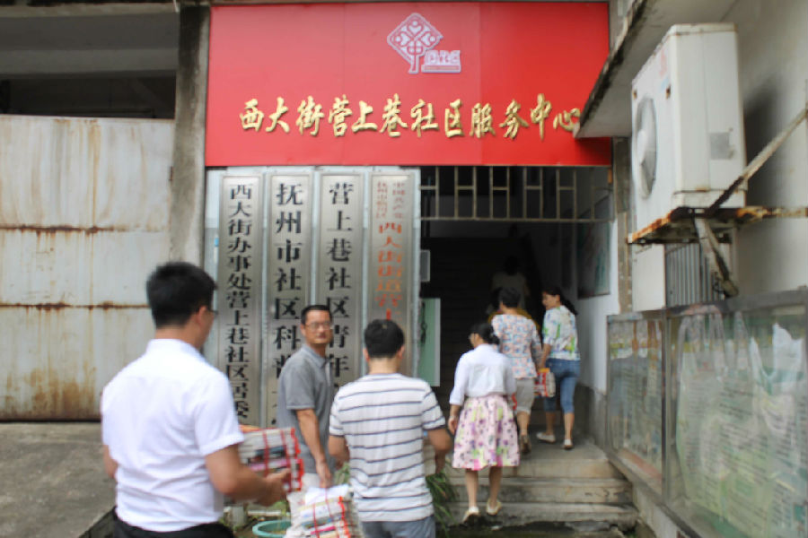 集中学习结束后,全体党员到抚州市图书馆西大街办事处营上巷社区分馆送书,并且指导社区工作人员进行图书上架、排架等工作。