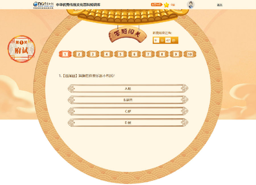 3)开卷答题:答题闯关中的题目皆来源于《中华优秀传统文化百科知识库》,参赛者可在百科库中探索正确答案。