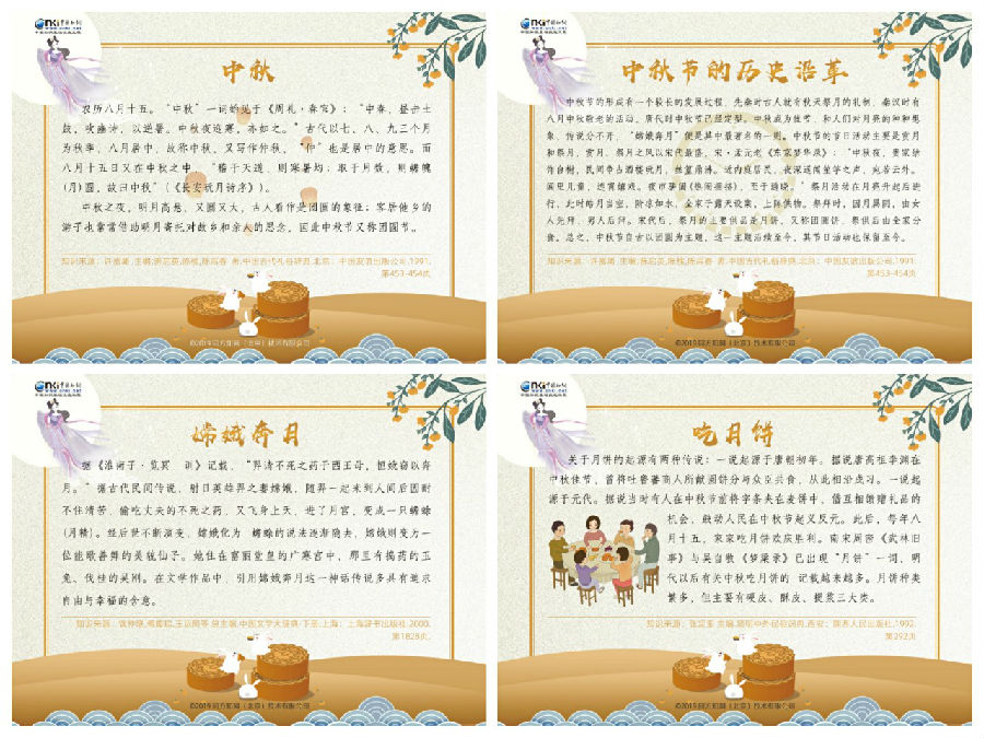 通过查阅、学习《中华优秀传统文化百科知识库》,从中选择一项您所喜欢的中秋传统文化民俗、俗语、相关诗词等,并附上推荐理由,可参考百科知识库上的权威解释,也可自行撰写该项传统文化推荐理由,撰文内容不少于300字,以word文本格式发送至邮箱ym8640@cnki.net,(邮件标题按照省份+图书馆+姓名+联系方式,无联系方式将视为无效)。活动将按照前10%的比例奖励参与读者。