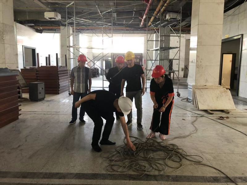 2019年9月30日上午,抚州市图书馆副馆长何翠红带领项目组工作人员和监理方、施工方一起到抚州市图书馆维修改造项目现场及周边环境对安全隐患进行一一排查。我馆副馆长何翠红要求施工人员必须佩戴安全帽方可上岗,攀爬脚手架人员必须要佩戴安全绳。各个施工场地必须要有消防灭火器(施工人员要会正确使用消防灭火器)。下班后,施工人员要切断所有电源方可离开。