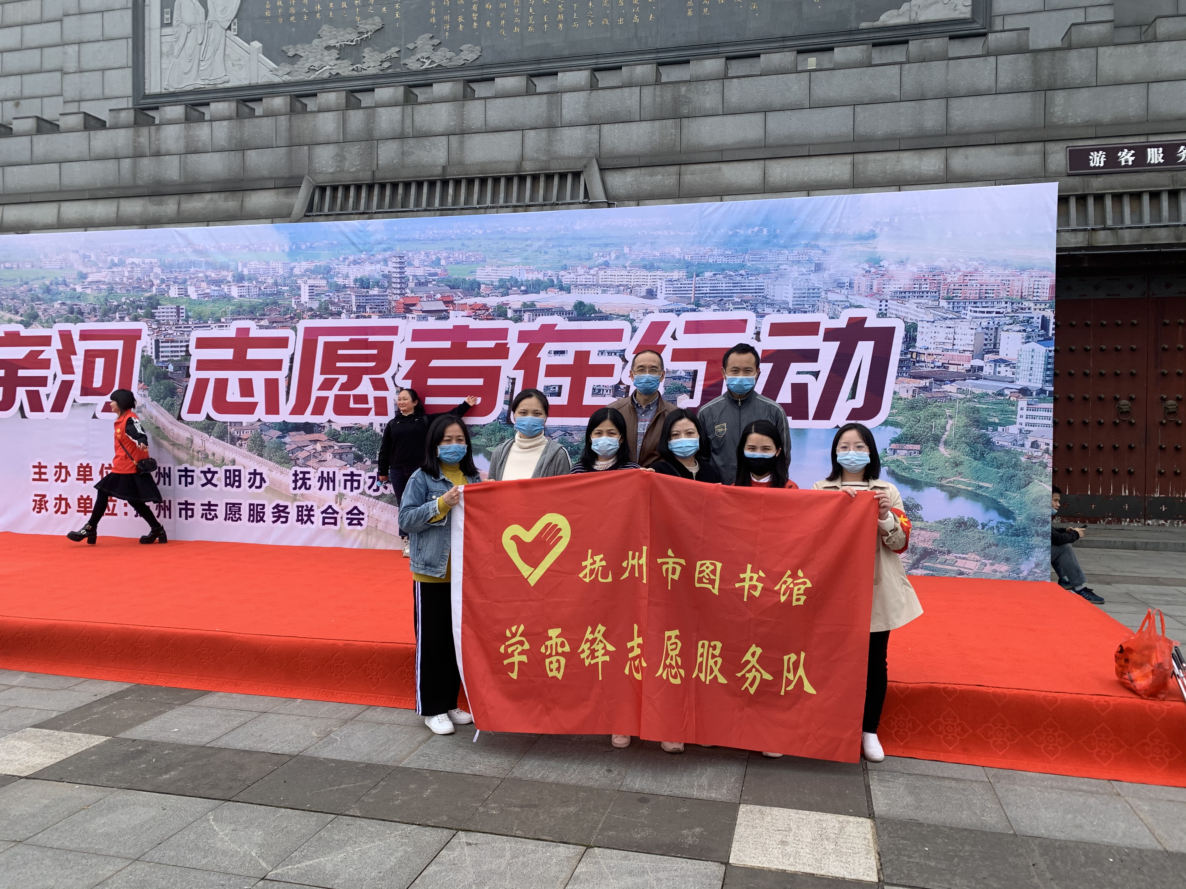 4月14日上午,抚州市图书馆学雷锋志愿服务队积极参加由中共抚州市委宣传部、抚州市文明办、抚州市水利局、抚州市志愿者服务联合会共同组织开展的“保护母亲河志愿者在行动”公益活动,对抚河流域进行垃圾清理活动。