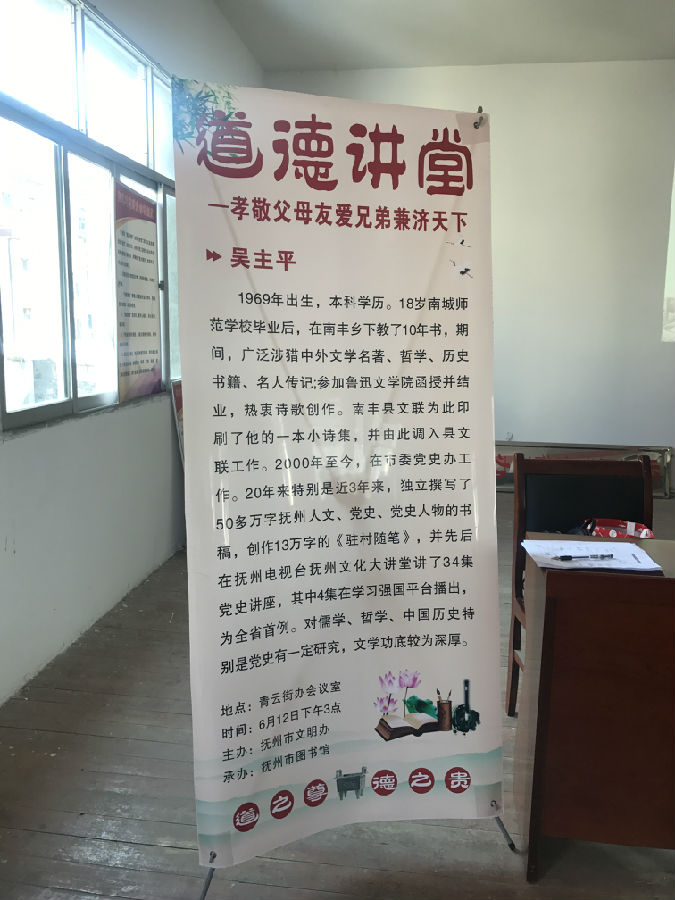 本期道德讲堂分为唱歌曲、学经典、谈感悟、送吉祥几个环节。在歌曲《爱的奉献》优美的旋律中,活动拉开了序幕。随后,市委党史办党史科科长吴主平老师以《孝敬父母,友爱兄弟,兼济天下》为题,从传统文化典籍讲起,结合自身生活经历,情真意切地向大家讲述了如何身体力行地去孝敬父母、友爱兄弟、帮助他人,深刻阐述了中华优秀传统文化中“孝悌”的意义。讲座最后,吴主平老师通过现场交流互动的形式组织大家分享了各自的道德感悟,并号召大家争当道德传播者践行者,为建设幸福抚州贡献力量。