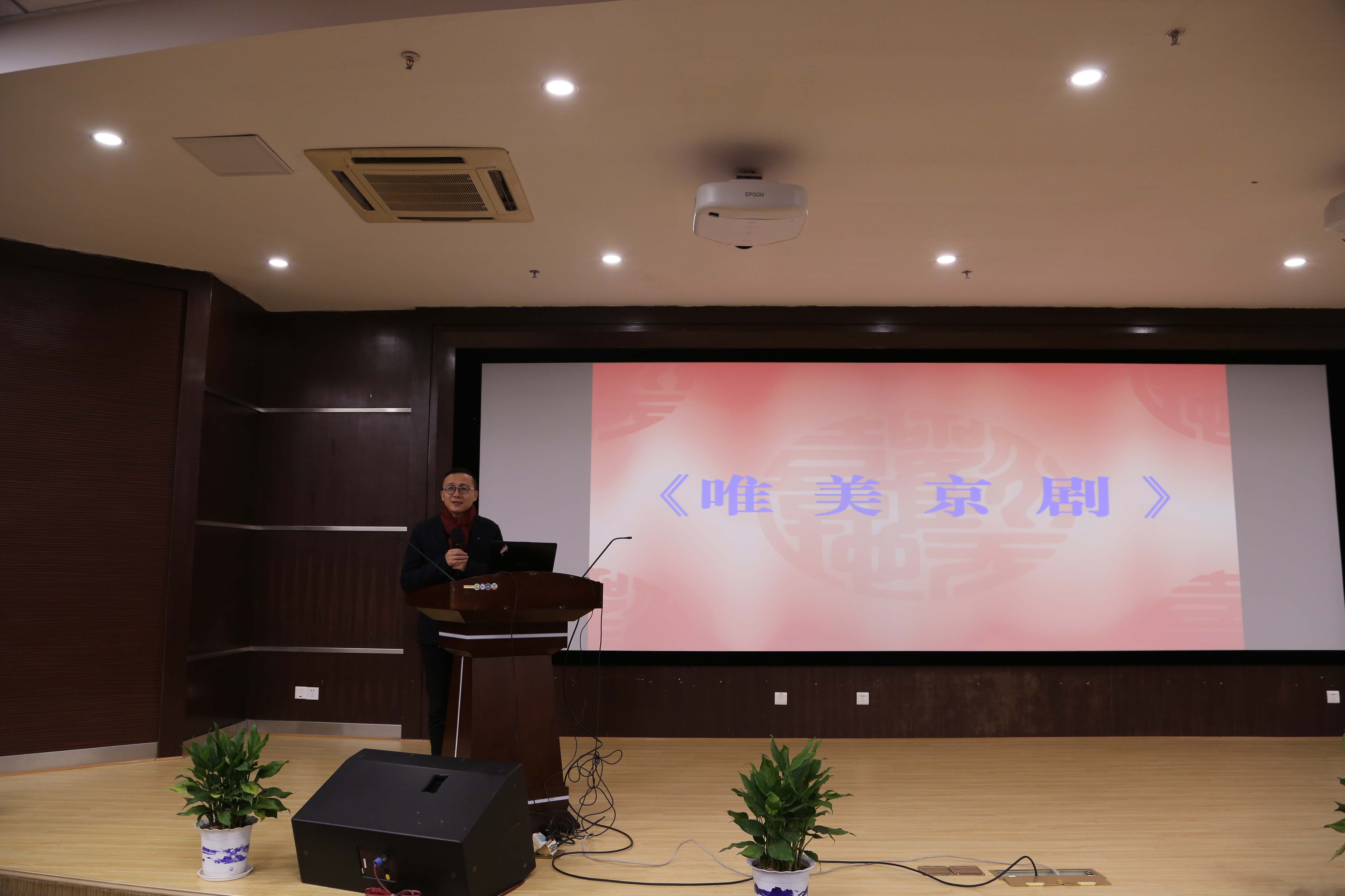 戏曲之美,美在唱腔余韵绕梁;戏曲之美,美在神韵婉转悠扬。活动特别邀请到中国国家京剧院国家一级导演、工文武丑行徐孟珂给大家带来主题为“唯美京剧”的讲座。讲座以讲唱演的形式开展;徐孟珂围绕京剧是高度综合的舞台艺术进行讲解,并解释京剧文体上融诗、词、史、赋诸文于一炉,音乐上化各种曲风为一体,表演上形成包容百家、自成一统之势。