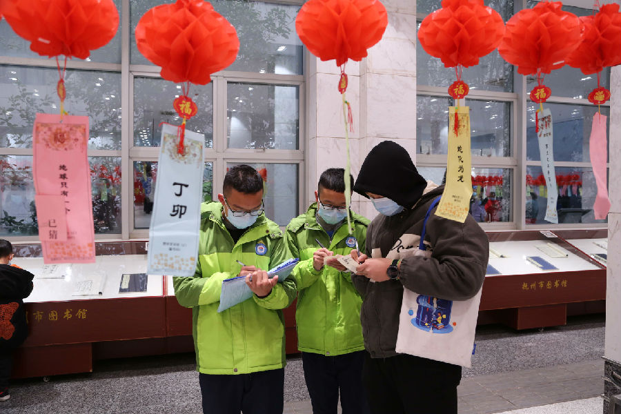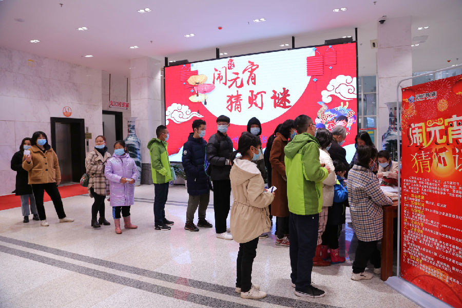 此次活动结合中国传统节日和建党100周年主题,灯谜内容设置包括民俗文化和党史知识,将传统融入时代,通过寓教于乐的方式激发读者学党史、爱祖国、传承中华优秀传统文化的热情。活动现场,读者们有的凝神思考,有的相互讨论,有的满脸欢喜地兑换奖品,整个图书馆大厅洋溢着喜庆祥和的节日氛围。