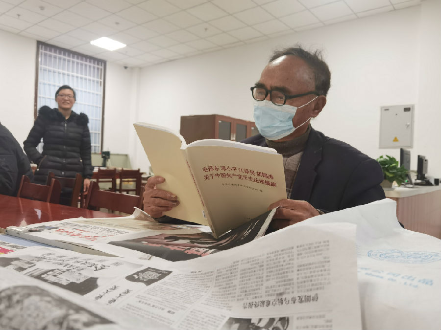 在工作人员的带领下,读者们手捧《习近平新时代中国特色社会主义思想学习问答》、《毛泽东邓小平江泽民胡锦涛关于中国共产党历史论述摘编》等党史读本,正襟危坐,认真研读,在书香氤氲中与历史对话,开启了一场学党史、践初心的寻梦之旅。