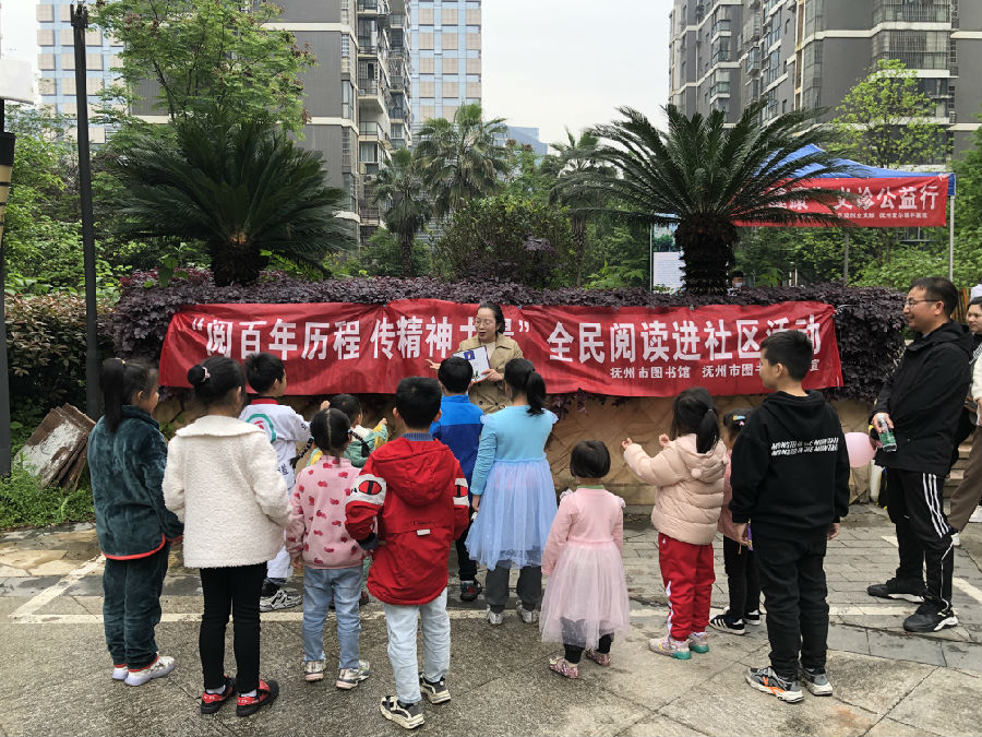 4月11日上午,抚州市图书馆全体党员前往瀚城国际小区开展“阅百年历程 传精神力量”全民阅读进社区暨“我为群众办实事”党员进社区活动。