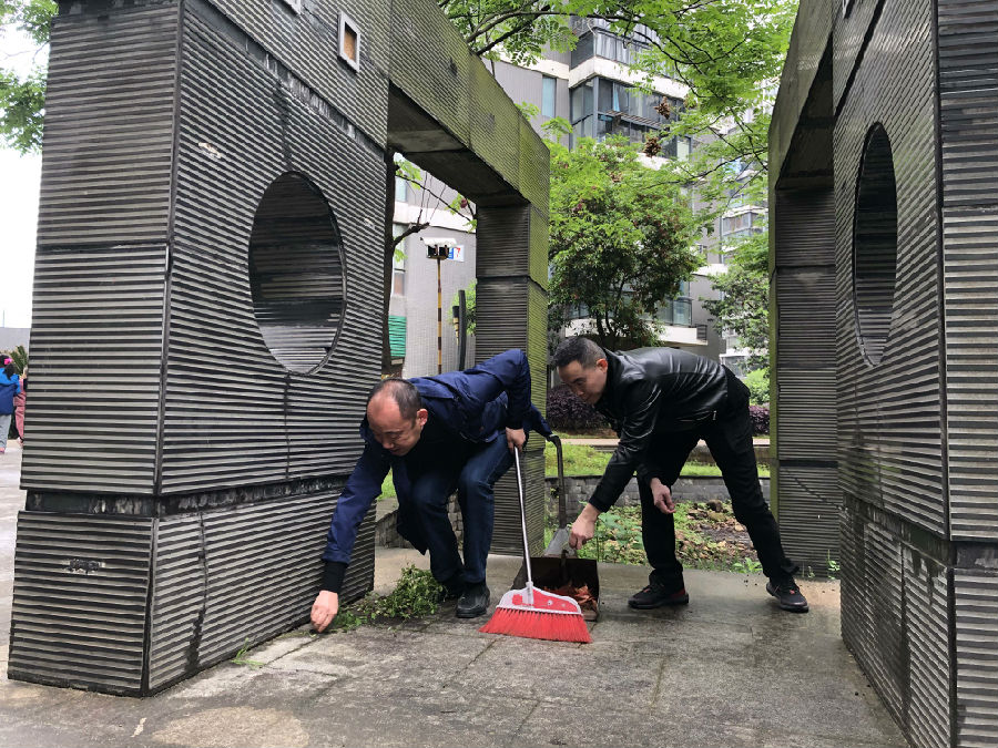 阅读推广活动结束以后,全体党员前往小区内各处,利用扫把等工具在楼栋周边进行卫生大清扫,对小区垃圾、杂草、落叶等进行了清理,并对社区群众在楼栋内乱堆乱放、乱丢垃圾等不文明行为进行了劝导。切实履行了党员义务,做到了为群众办实事、做好事。