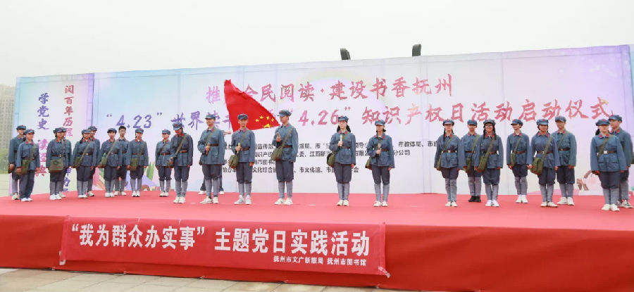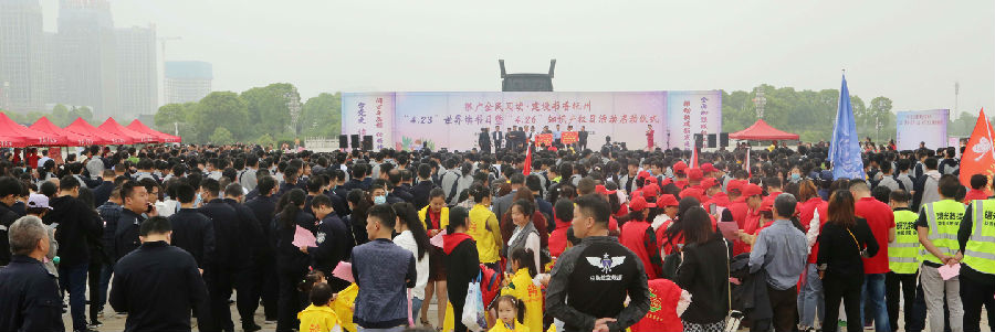 4月23日上午,名人雕塑园北广场人头攒动,歌声飘扬,来自市委有关部门、市直有关单位及中小学生代表、市民代表3000余人共聚与此,共襄读书盛会。在这场由市委宣传部、市文广新旅局等单位主办、市图书馆承办的“4.23”世界读书日暨“4.26”知识产权日活动启动仪式上,市政府副市长谭赣明发表了热情洋溢的致辞,市文广新旅局局长谭玉英发出全民阅读倡议最强音,来自市实验学校的中学生代表们满怀激情地诵读了红色经典《七律·长征》《少年中国说》,小学生代表们古诗新唱国学经典《村居》《寻胡隐君》《游子吟》《春晓》,活动现场的3000余名市民共同诵读红色诗篇《家国风雨情 青春中国梦》,朗朗书声响彻广场,掀起全民阅读活动新高潮。