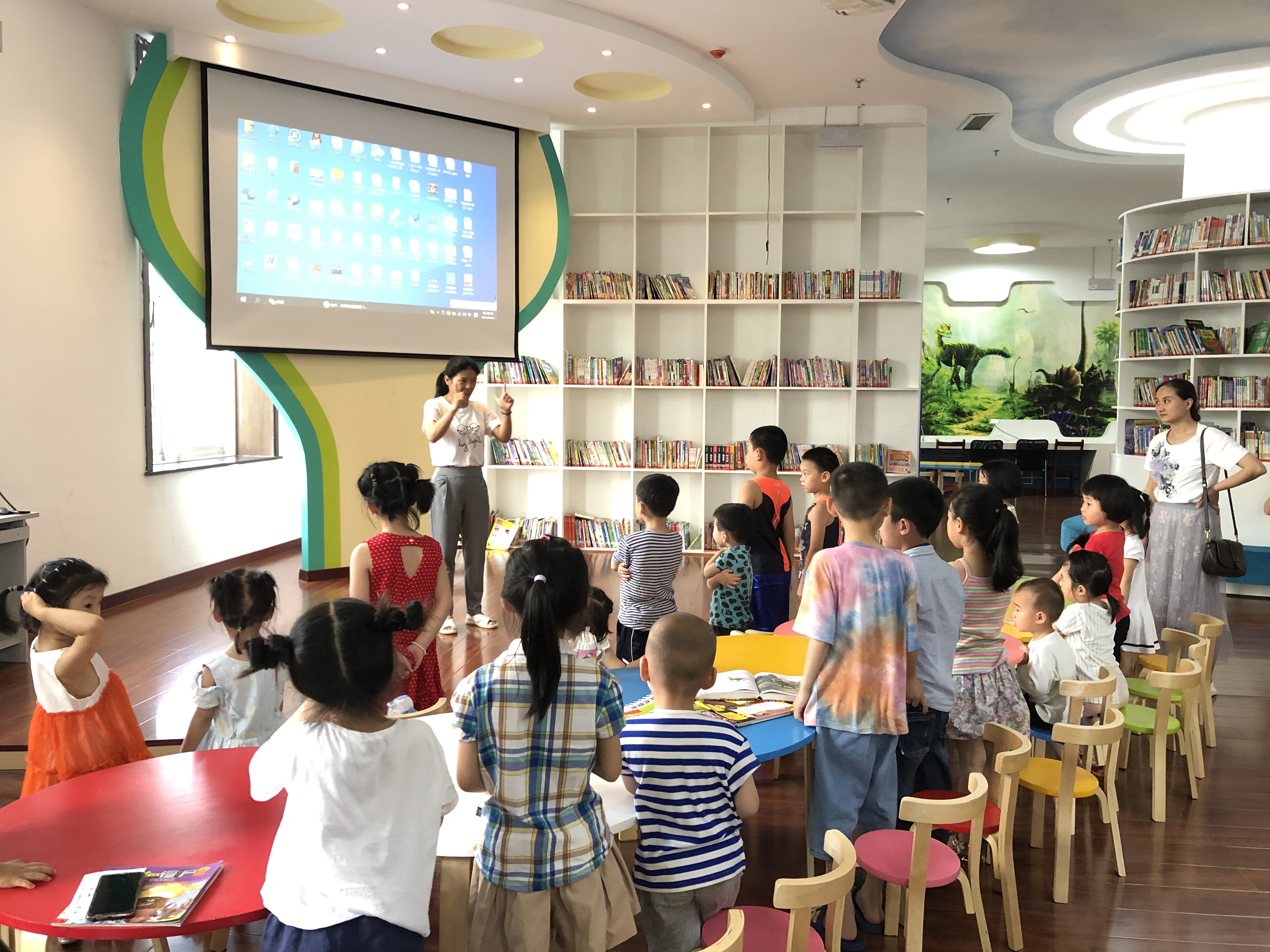 5月15日下午,市图书馆少儿数字体验馆一场活泼的互动小舞蹈拉开了第十二期抚图小读者学堂故事会活动的序幕,糖果老师给孩子们带来了绘本故事——《在教室说错了没关系》。