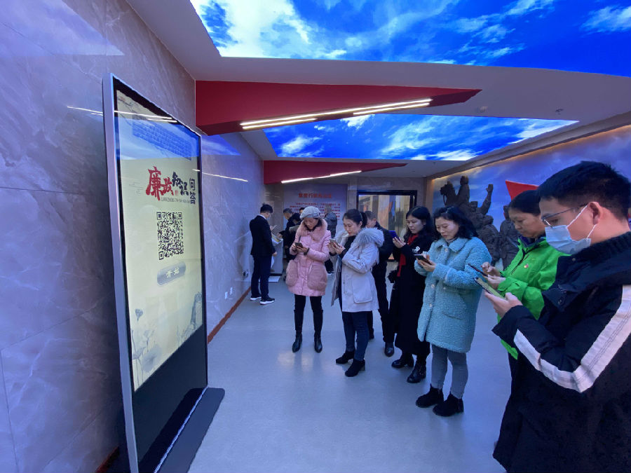 在教育馆内,大家认真学习习近平总书记关于全面从严治党的重要论述,回顾党的十八大以来全面从严治党取得的成就,观看近年来查办的一批典型案例。在讲解员的带领下,依次参观了“序厅·永远在路上”“全面从严治党 引领新时代”“守底线 树高线”“尾厅·重整行装再出发”等篇章。展厅内一幅幅图片、一段段视频、一幕幕场景,向我们述说着中国共产党百年来走过的光辉历程和以习近平同志为核心的党中央一以贯之推进全面从严治党的卓越成效。