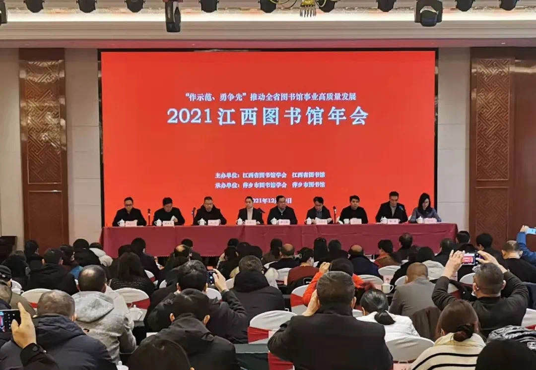 12月28日至12月30日,2021江西图书馆年会和2021年全省公共图书馆工作会议在萍乡召开,来自全省省、市、县三级公共图书馆及各高校图书馆馆长200余人参加会议,省文化和旅游厅、省科学技术协会、省社会科学界联合会及萍乡市政府有关领导出席会议并致辞。