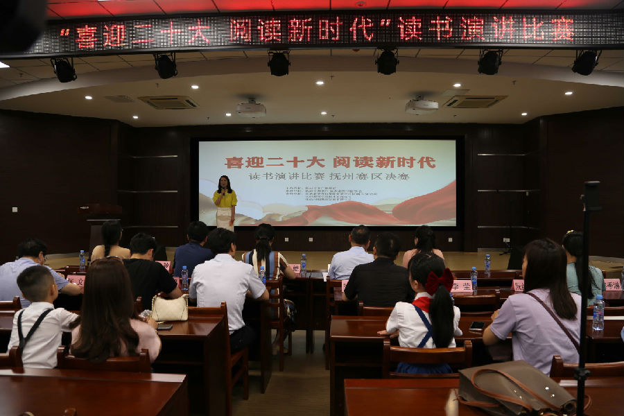 为深入推进全民阅读,吸引广大读者关注赣版图书,6月26日上午,由市文广新旅局主办,市图书馆、市图书馆学会承办,江西新华发行集团有限公司抚州市分公司,江西超星信息技术有限公司,江西同创教育发展有限公司协办的“喜迎二十大,阅读新时代”读书演讲比赛在市图书馆顺利举办。江西省图书馆党委书记、馆长涂安宁,抚州市文广新旅局党组成员、副局长陈宁广等领导嘉宾出席了本次比赛。