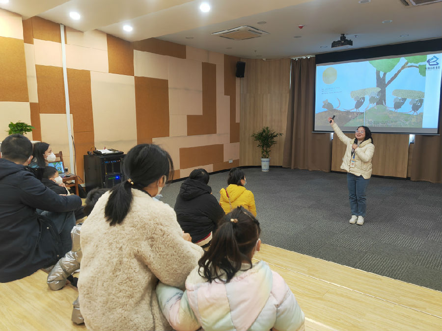 活动现场,市图书馆的小徐老师组织孩子们通过 “自我介绍”的小环节进行热场,让孩子们更快地融入到活动中,也拉近了彼此的距离。随后,小徐老师引导孩子们认真观察本次活动的少儿绘本——《田鼠阿佛》中的图片,生动地描述着绘本里的故事情节,带领现场的孩子们开启了一段奇妙有趣的阅读之旅,从中感受到阅读的快乐。