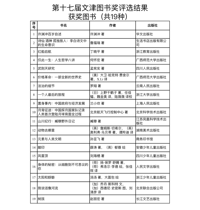 第十七届文津图书奖获奖图书