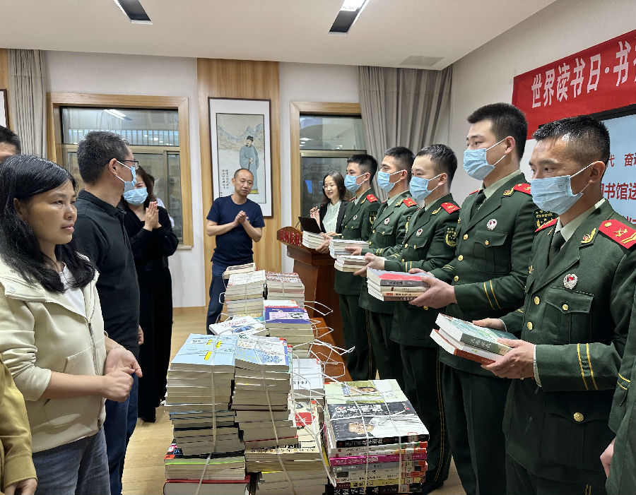 为进一步弘扬拥军爱军优良传统,4月18日,在“4·23”世界读书日来临之际,抚州市图书馆走进武警抚州支队开展“阅享新时代·奋进新征程”送图书进军营活动。抚州市图书馆的工作人员精心挑选了政治、军事科学、历史文化、文学、党史红色经典等400余册适合军人阅读的图书,对抚州市图书馆武警抚州支队分馆的部分图书进行更换,并指导武警抚州支队图书管理员进行图书分类、上架等工作,受到部队官兵的欢迎。