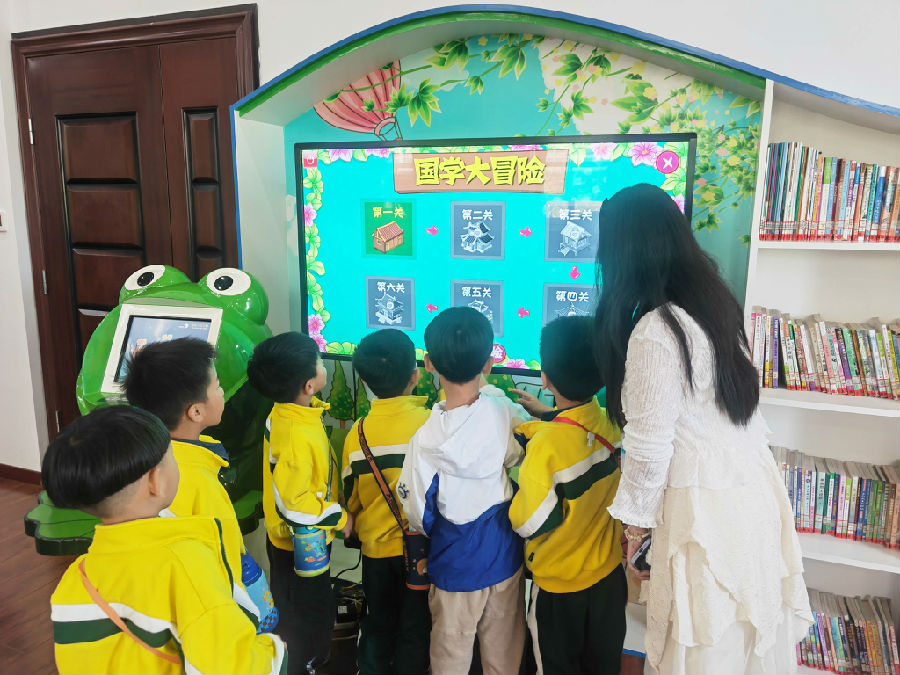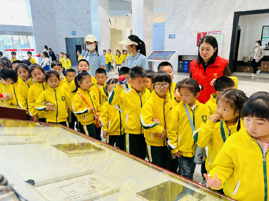 小读者们在图书馆工作人员和老师的带领下,参观了展厅、少儿阅览室、少儿数字体验室,在图书馆工作人员的介绍下,了解了抚州市图书馆的各类少儿图书、少儿电子设备以及文创产品、特色馆藏等。
