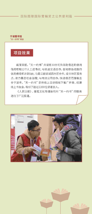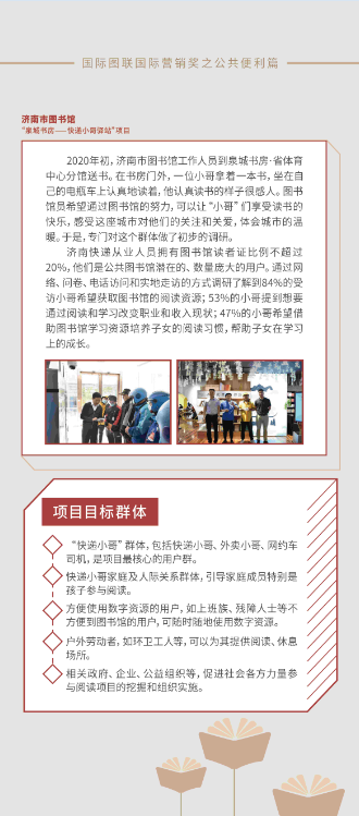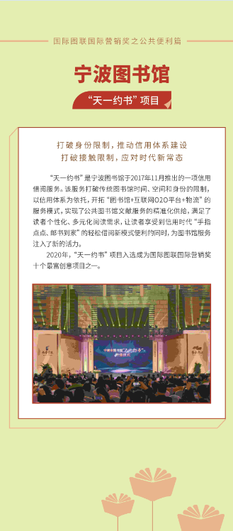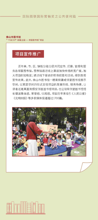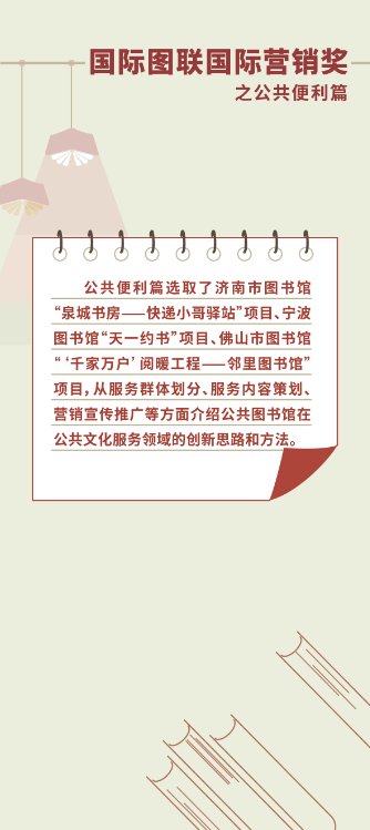 【百馆千万场 服务来共享】“凝聚精华 助力推广”公共图书馆服务宣传推广专题展——国际图联国际营销奖之公共便利篇