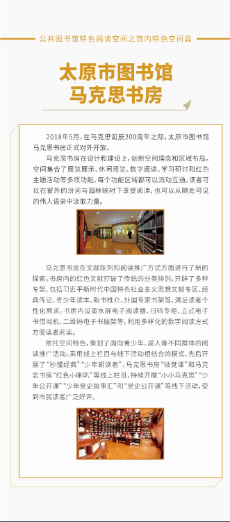 【百馆千万场 服务来共享】“凝聚精华 助力推广”公共图书馆服务宣传推广专题展——图书馆特色阅读空间之馆内特色空间篇