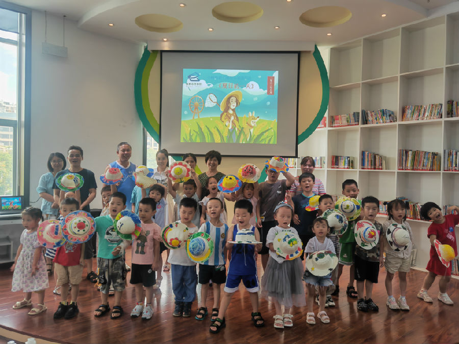徐老师引导小读者们仔细阅读绘本并进行了详细解读,让他们从绘本里感受夏天的趣味 。紧接着,家长和孩子们一同制作DIY草帽,用五彩的画笔,在草帽上绘画出一幅幅构图饱满、生动有趣的图画。活动最后,孩子们一起在自己绘制的草帽画前合影留念。
