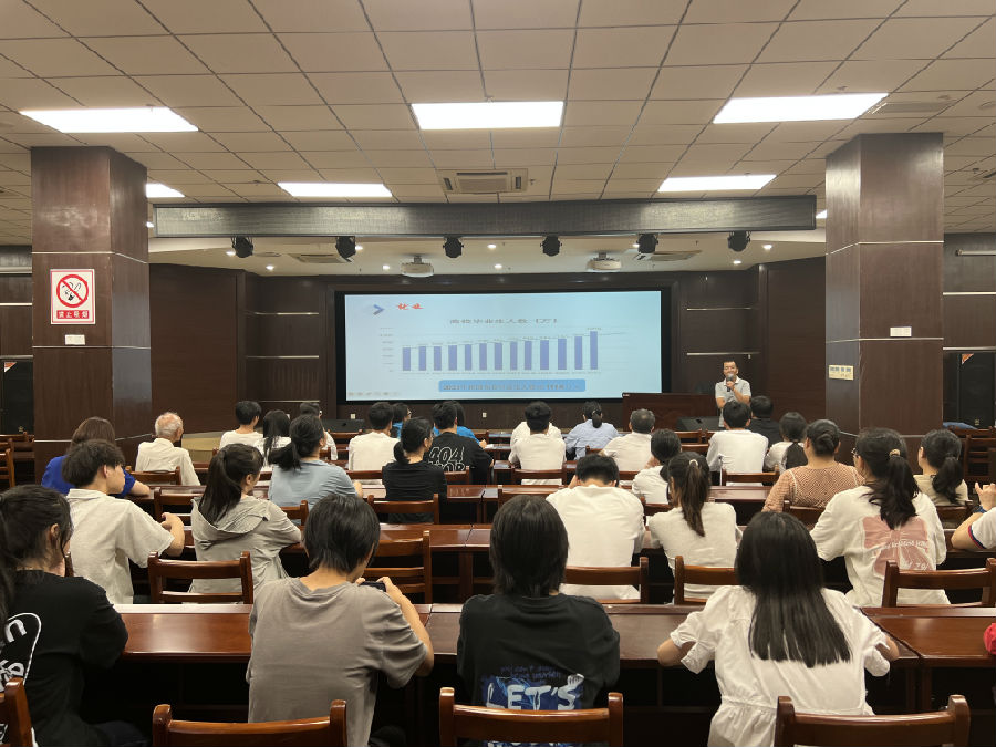 为帮助学生明确职业生涯规划的重要意义,科学规划大学四年的学习生活,8月25日上午,由市委人才办、团市委、市文广新旅局主办、市图书馆承办的2023大学生生涯规划与职业发展主题讲座在市图书馆三楼报告厅举行。湖南工业大学商学院副教授肖军从以下四个方面对大学生就业规划进行了讲解:一是基于大数据的我国当前就业形势分析;二是职业生涯规划概述;三是人生各阶段的规划及能力要求;四是实现职业生涯规划的路径探寻。