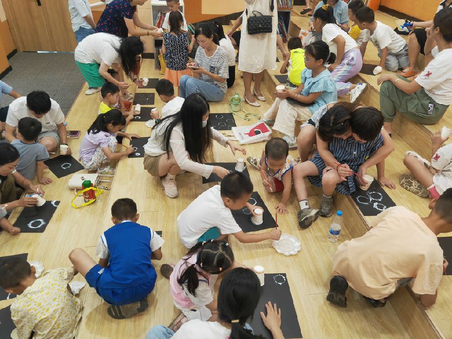 最后,在手工制作环节,老师带领小读者们制作美丽的泡泡画作,每个孩子都得到了肯定,感受到了鼓励的温暖与力量。