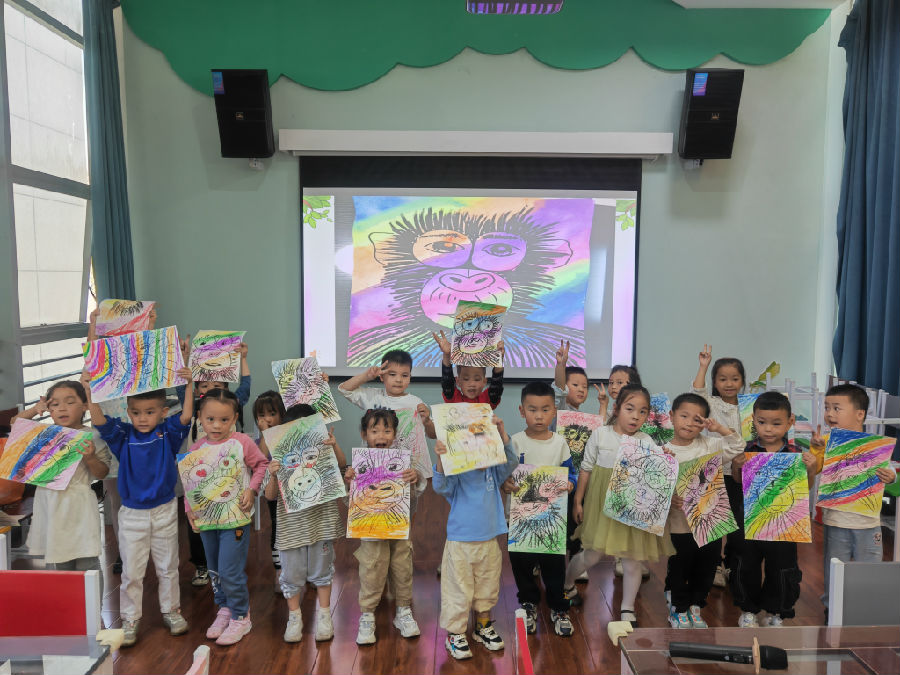 活动的最后,亲子家庭们一起手工绘画大猩猩。让孩子们借助绘画舒展内心的喜好和兴趣。