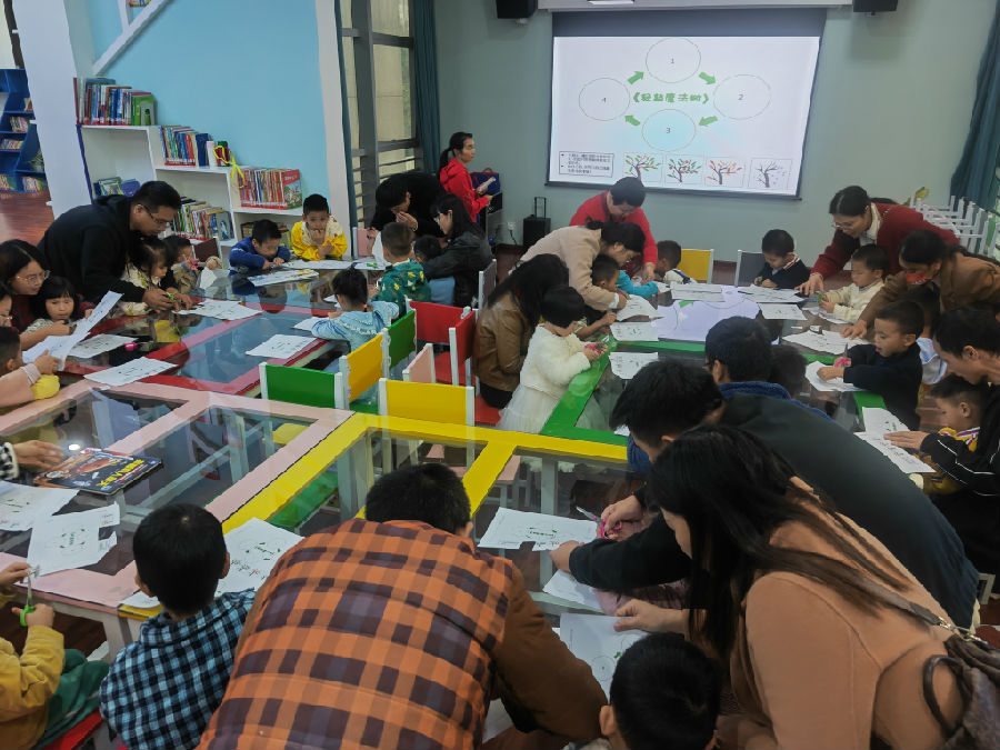 11月11日上午9点半,抚州市图书馆在四楼绘本阅读空间举办了“抚图绘梦悦读会”第29期---《轻敲魔法树》,本次活动共吸引20余组亲子家庭参与。通过互动式的绘本共读方式,让孩子爱上阅读,同时富有想象力的课程设置,激发孩子们的想象力和创造力,大胆地表达自己。