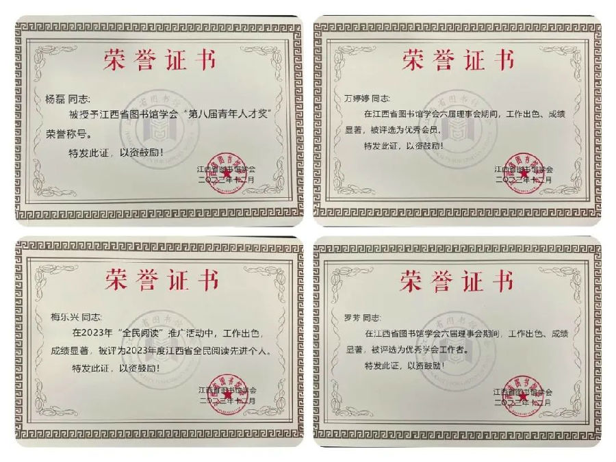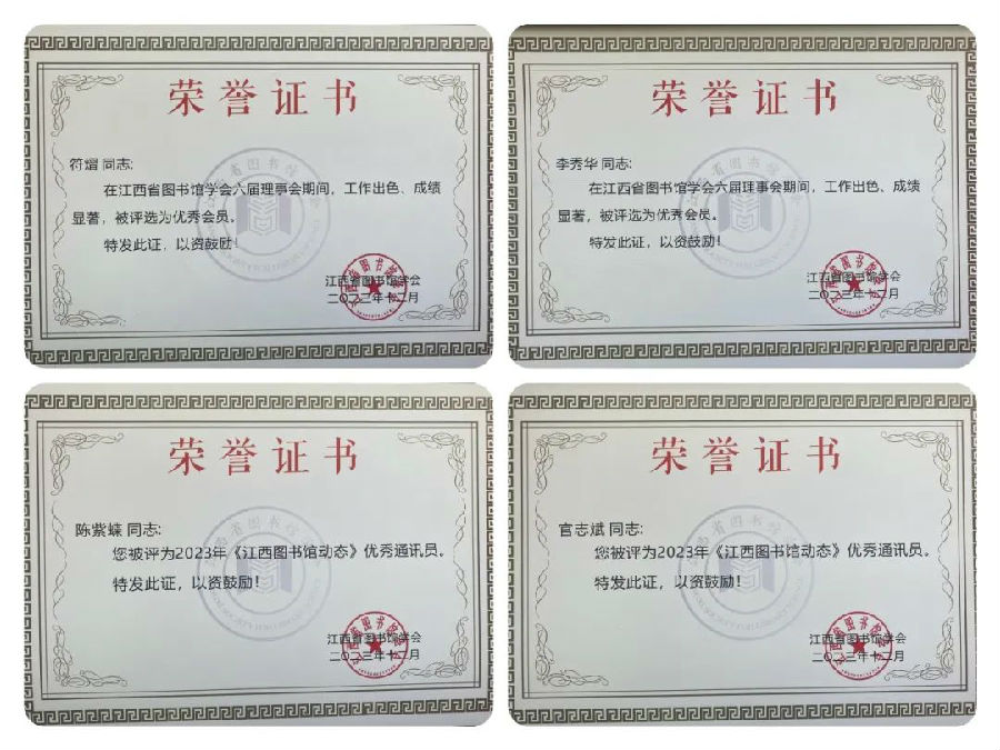 江西省图书馆学会六届理事会先进学会颁奖仪式
