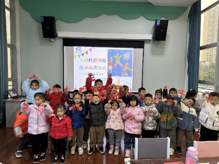 活动以“大寒”的特点和习俗讲解为开始,带领小朋友们共读绘本《大寒去雪乡》。该绘本以二十四节气的大寒为时间线,着重展示了中国雪乡的风土人情、美食与美景,还融合了有关节气的知识、文化历史故事和民俗知识等,内容丰富而又不失趣味。绘本阅读完后,小朋友们还根据所学到的民俗知识,分别制作了各式各样的节日窗花,春节氛围愈发浓厚。