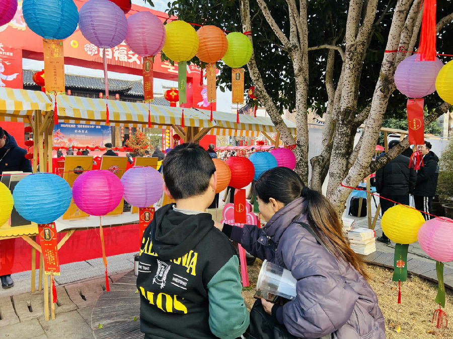 上午10时,勤廉广场人头攒动、暖意融融。新春猜灯谜活动吸引了众多市民前来参加,灯谜谜面包含了字谜、成语谜、生活知识等,既贴近生活,又充满文化色彩,生动有趣,兼具娱乐性和知识性,不久,兑奖处便排起了长队。广场另一侧,六名抚州市知名书法家挥毫泼墨,为居民免费书写春联和“福”字,为即将来临的春节增添了浓浓的喜庆氛围。
