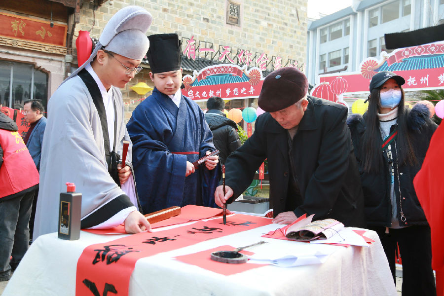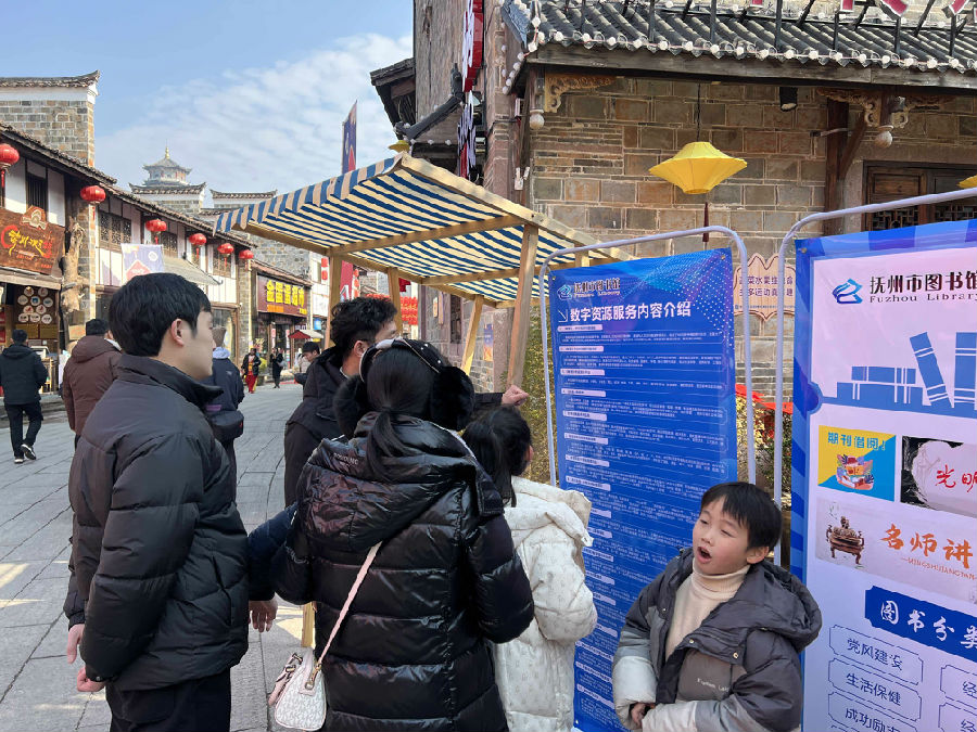 为学习贯彻习近平文化思想和党的二十大精神,营造欢乐、祥和、喜庆的中国年氛围,让广大人民群众感受家的温暖、年的味道,元月27日,抚州市图书馆在文昌里历史文化街区协办“视频直播江西年——我的江西年”抚州市主会场系列文化活动,开展“迎新春送福进万家”送春联、猜灯谜、年俗诗词展、数字资源进万家等活动。