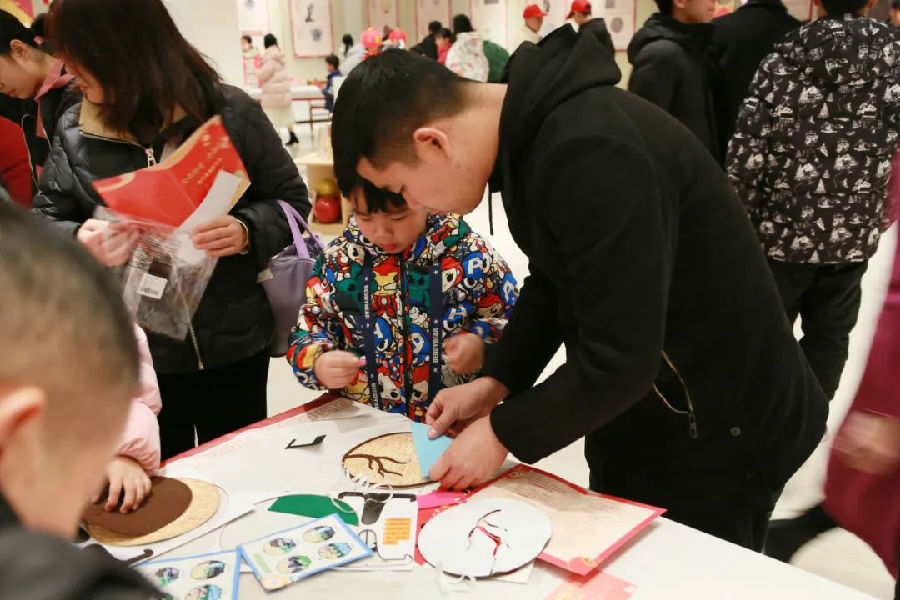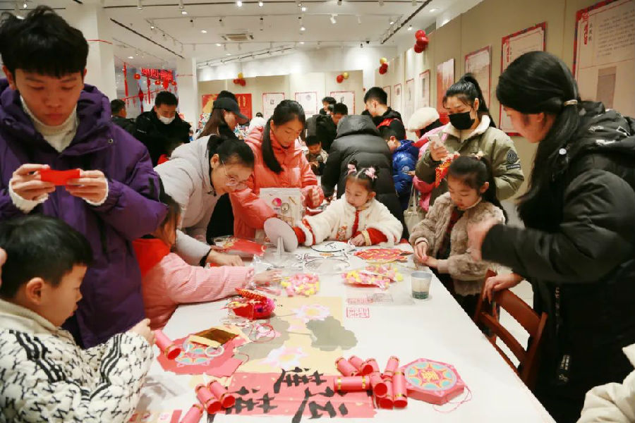 “立春瑞雪兆丰年”区域,读者们制作二十四节气立春挂饰,诵读二十四节气歌,感受吉祥的图案和祝福的文字装点生活空间的美好;