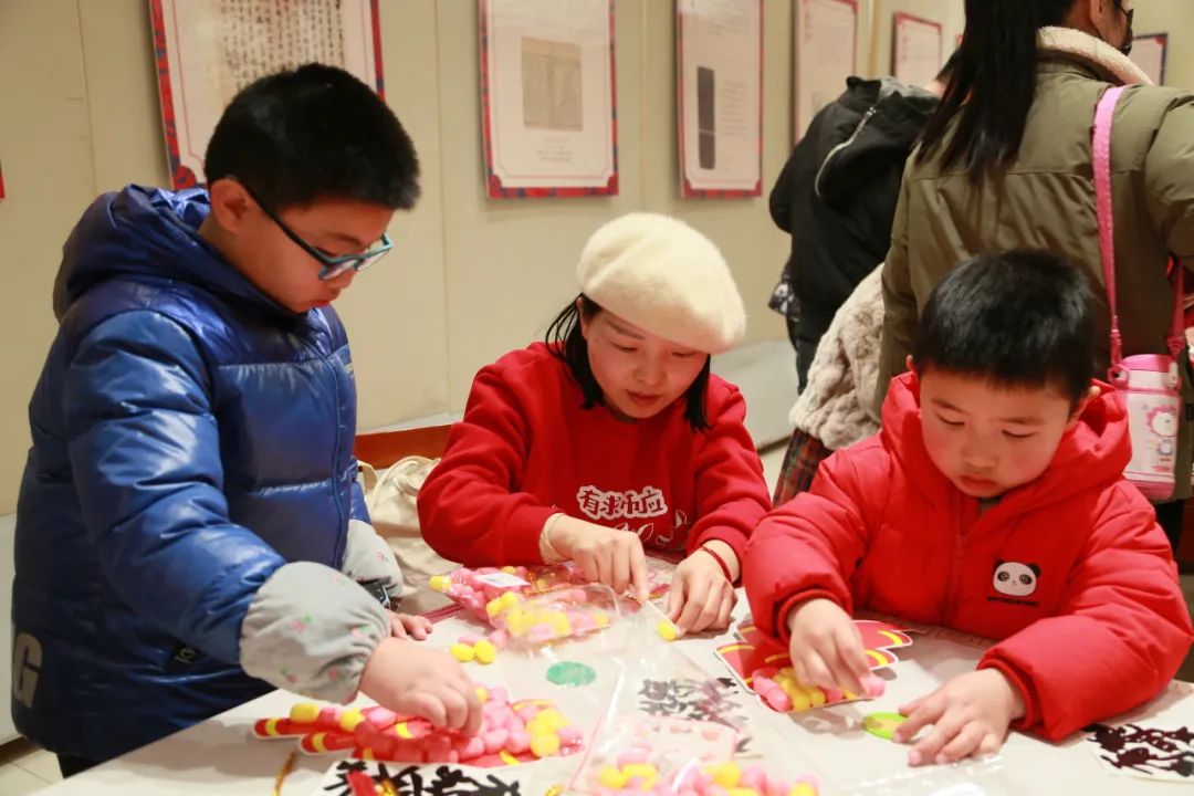 “爆竹声声报平安”区域,读者们制作纸爆竹,模拟爆竹的声音,为新年祈福;