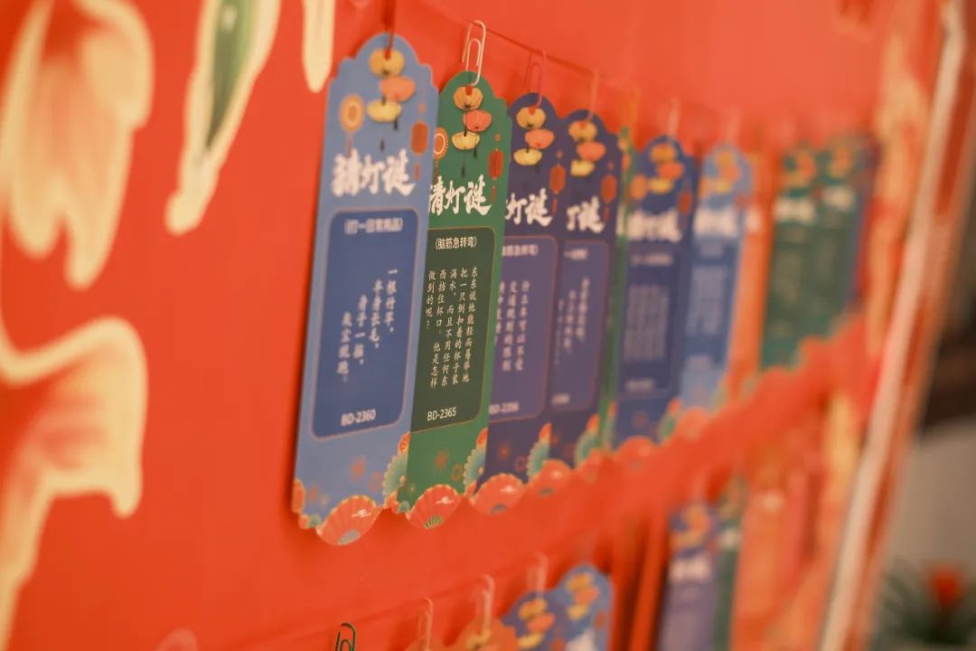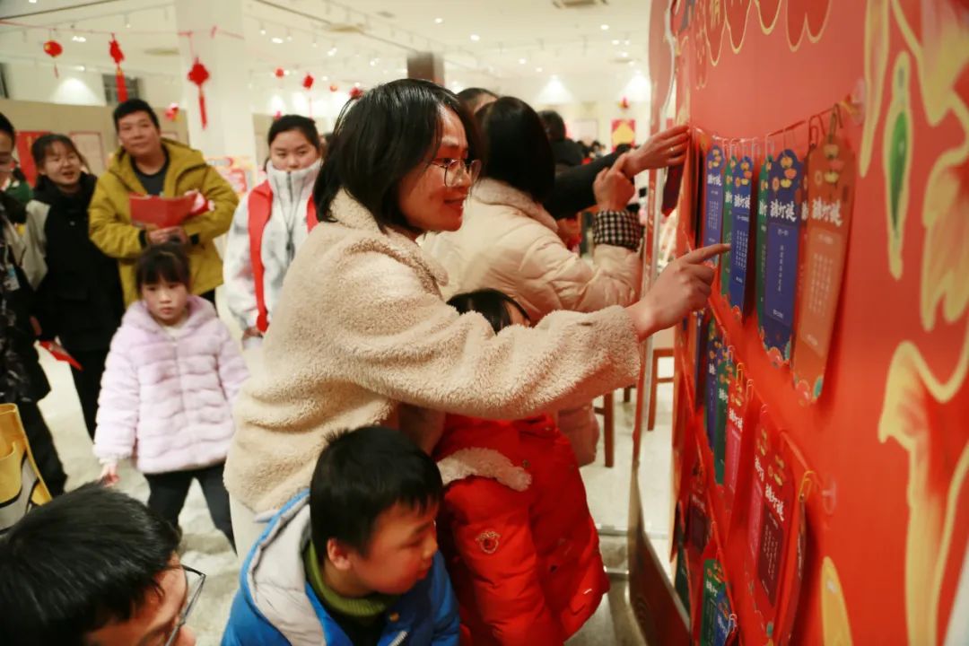 “欢乐灯谜共赏玩”区域,读者们参加灯谜竞猜活动,体验智慧的较量与乐趣;