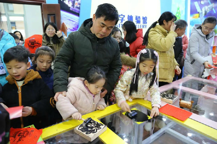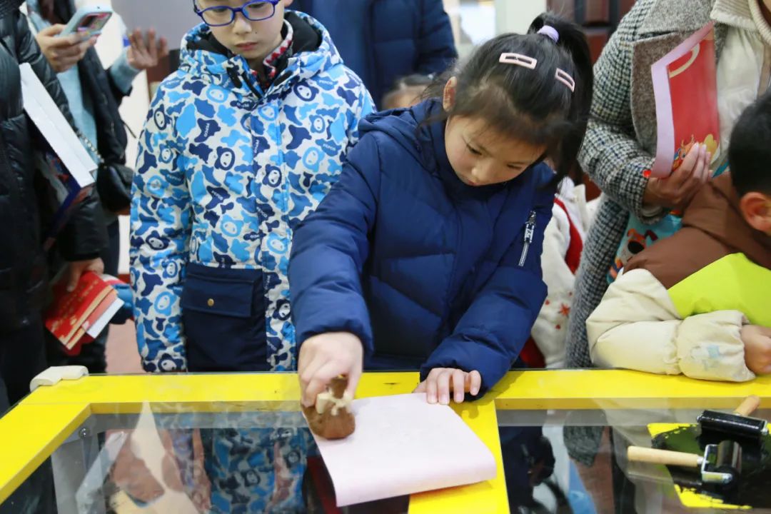 “迎新春送年画活动”区域,读者们亲手体验拓纸上墨,在纸墨间感知非遗文化的厚重历史;
