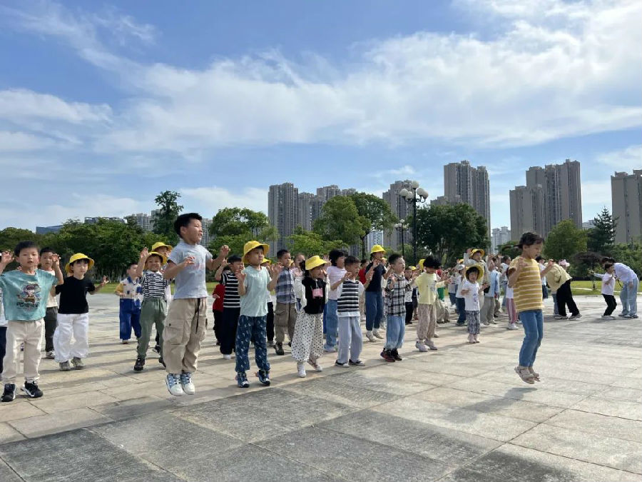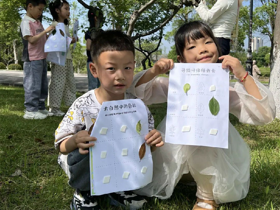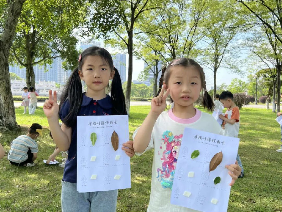 阳光明媚的户外场地,活动在欢快活泼的律动表演中拉开帷幕。小朋友们伴随着动感的音乐,跳起了充满童趣的舞蹈,脸上洋溢着灿烂的笑容,现场气氛热烈而温馨。律动表演结束后,一场别开生面的“树叶探秘之旅”正火热进行。孩子们手攥放大镜,化身“自然小侦探”穿梭其中,或弯腰拨开草丛,或踮脚拾起飘落的叶片,兴奋地相互展示“战利品”。