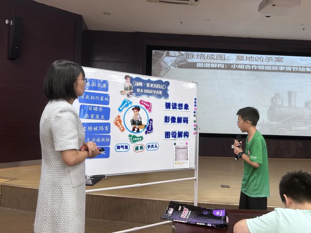 勋章为钥,开启沉浸式文学奇旅 活动以一枚镌刻着“阅读冒险勇士”字样的金色勋章作为开场,瞬间点燃参与者的好奇心。陈老师化身“冒险引路人”,将读者带入汤姆·索亚的世界。从“刷墙事件朋友圈创作”的趣味互动开始,读者们化身小镇居民,用诙谐的文字和表情包发布动态。在思维火花的碰撞中,汤姆狡黠聪慧、充满感染力的性格特质跃然“屏”上,经典文本与现代社交语境奇妙融合,引得现场笑声不断。 多维互鉴,解构文本深层密码 课堂突破单一文字阅读模式,将文本、影视、图像等多元媒介编织成解读网络。在“墓地凶杀案”情节探究中,陈老师播放电影片段并戛然而止,抛出悬念:“波特是否会认罪?汤姆能否冲破恐惧出庭作证?”读者们化身“侦探”,结合文本线索与影视画面细节,展开大胆预测。随后,“法庭指证心理动态解码”环节,以山形心理动态图展现其从颤抖退缩到挺身而出的心理蜕变。可视化的创作过程,让马克·吐温笔下“少年成长”的永恒主题变得触手可及。 情节图谱绘制环节,陈老师让读者在动手创作中主动梳理文本逻辑、挖掘主题深意。当笔尖落下,不仅是汤姆的冒险故事有了具象模样,更在读者心中播下了深度阅读与创意表达的种子。 方法指引,赋能长效阅读 活动尾声,陈老师以《汤姆·索亚历险记》的探索为范例,提炼出长效阅读方法。为读者点亮终身阅读的明灯,鼓励读者将自己代入书中角色,与文学人物产生深度共鸣;倡导结合文本细读、影视对比、图示梳理等多元形式,从不同维度拆解作品内核;引导读者让文学中的智慧真正融入日常生活,使每一次阅读都成为理解世界、完善自我的成长契机。这不仅是打开《汤姆·索亚历险记》的“万能钥匙”,更成为解锁所有经典名著的通用密码,让阅读真正成为滋养心灵、启迪思维的长效旅程。 《汤姆·索亚历险记》的课堂虽已结束,但它所唤醒的自由意志与思辨光芒,必将如永不熄灭的灯塔,照亮我们在书海中继续远航的征途,让每一次翻页,都成为生命向更辽阔处生长的见证。